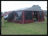 And for the finishing touches, the trailer had to be able to be used as a stand alone trailer (which it is). The poles, guy ropes and pegs all had to be heavy duty and galvanised (and they are). The mattress is 150mm thick (many only have 120mm thick which you can tend to bottom out in). The kitchens had to be sturdy, simple, flexible and in the spirit of camping which is why we haven't gone the stainless steel way.